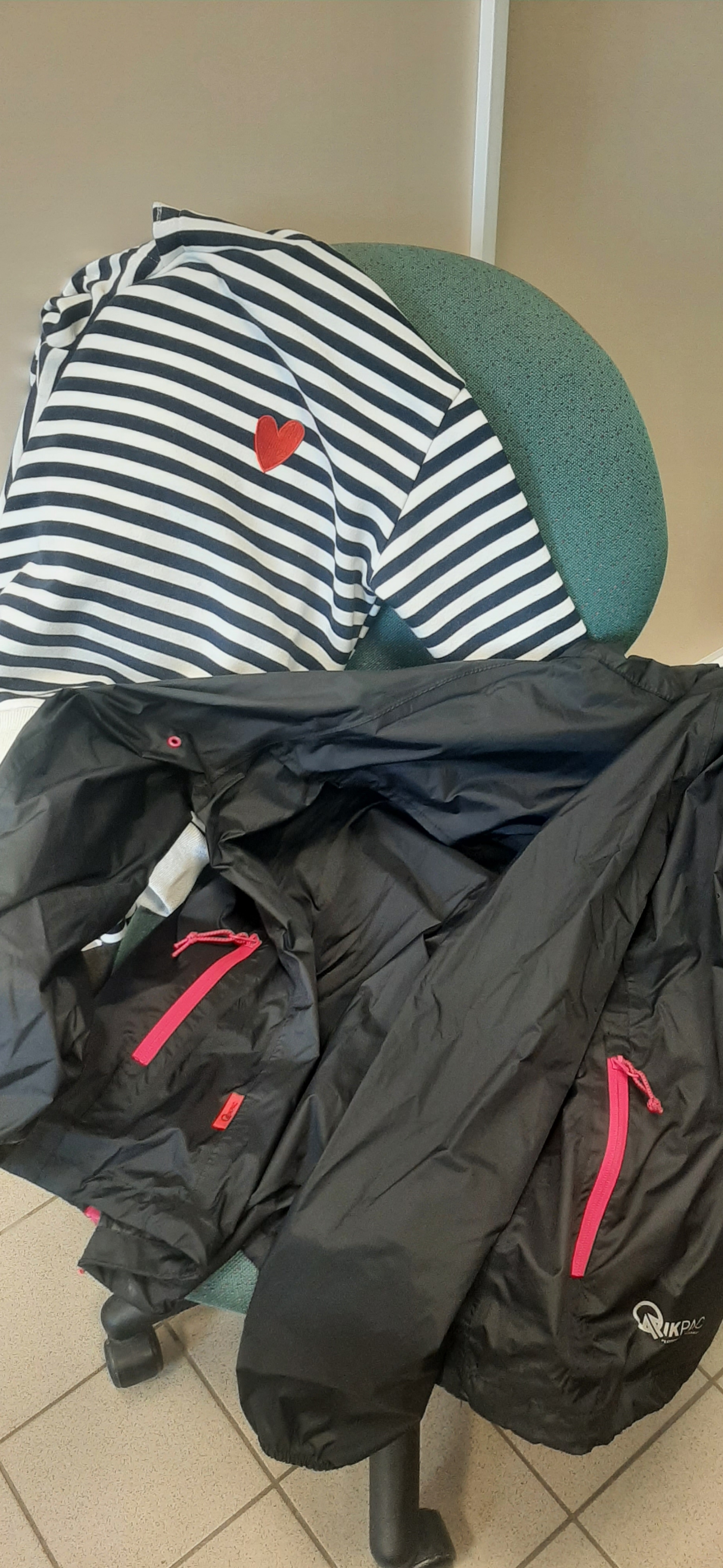 Un Kway noir et rose ainsi qu'un pull marin avec un cœur ont été oubliés à la salle polyvalente le we du 13 et 14 septembre.