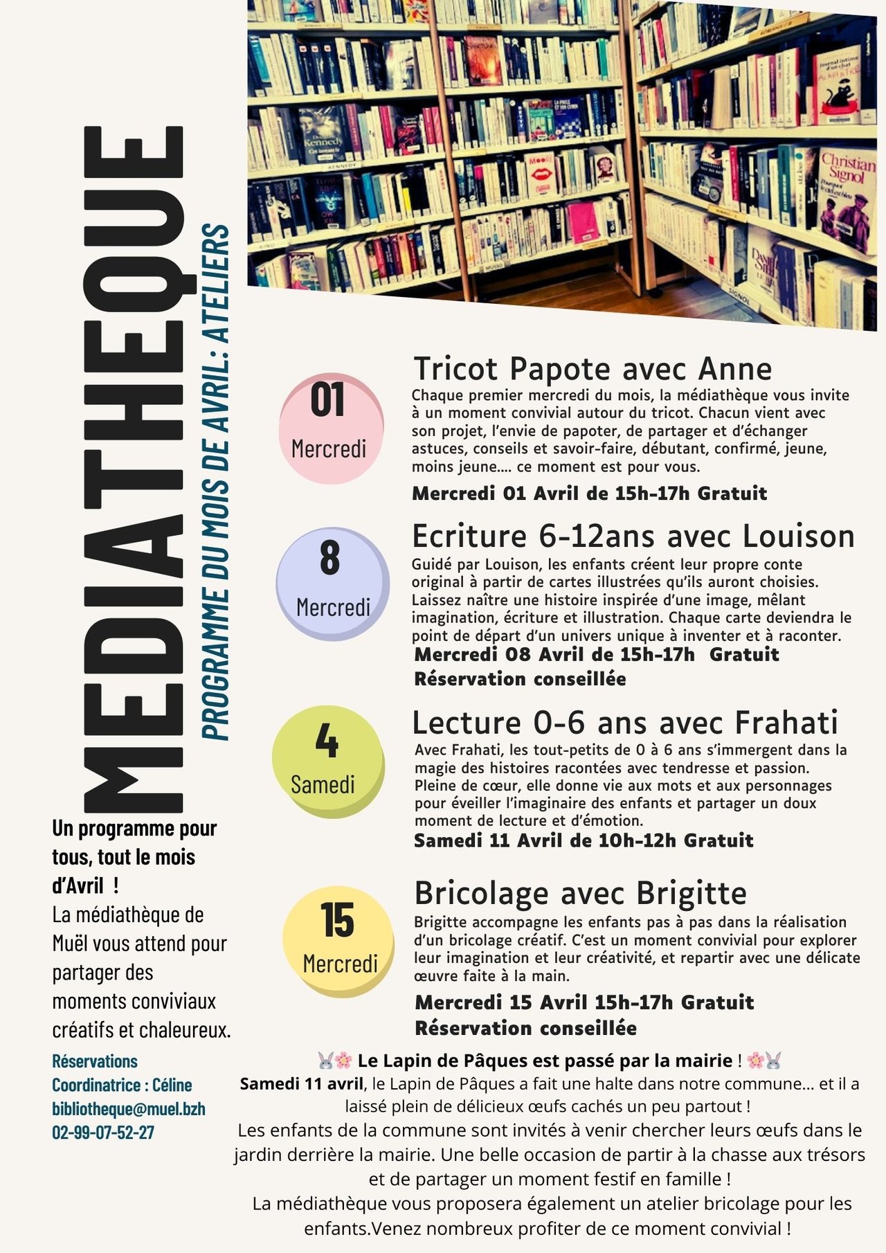 Le programme d’avril de la Médiathèque de Muël est arrivé !