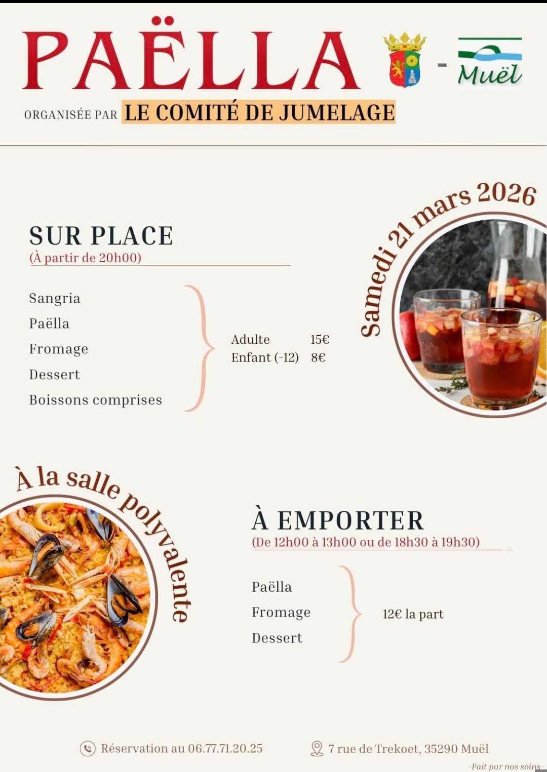 Le repas de la Paëlla aura lieu le samedi 21 Mars 2026, Merci de réserver cette date dans votre agenda !!
